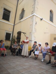 Avui, a la llar residència que la Fundació Mas Albornà regenta a Les Cabanyes, en el marc del leitmotiv «Textures!», que aquest any està presidint les lectures EVA354 al Festival EVA, lectores i convidada s’han trobat amb allò «vellut».