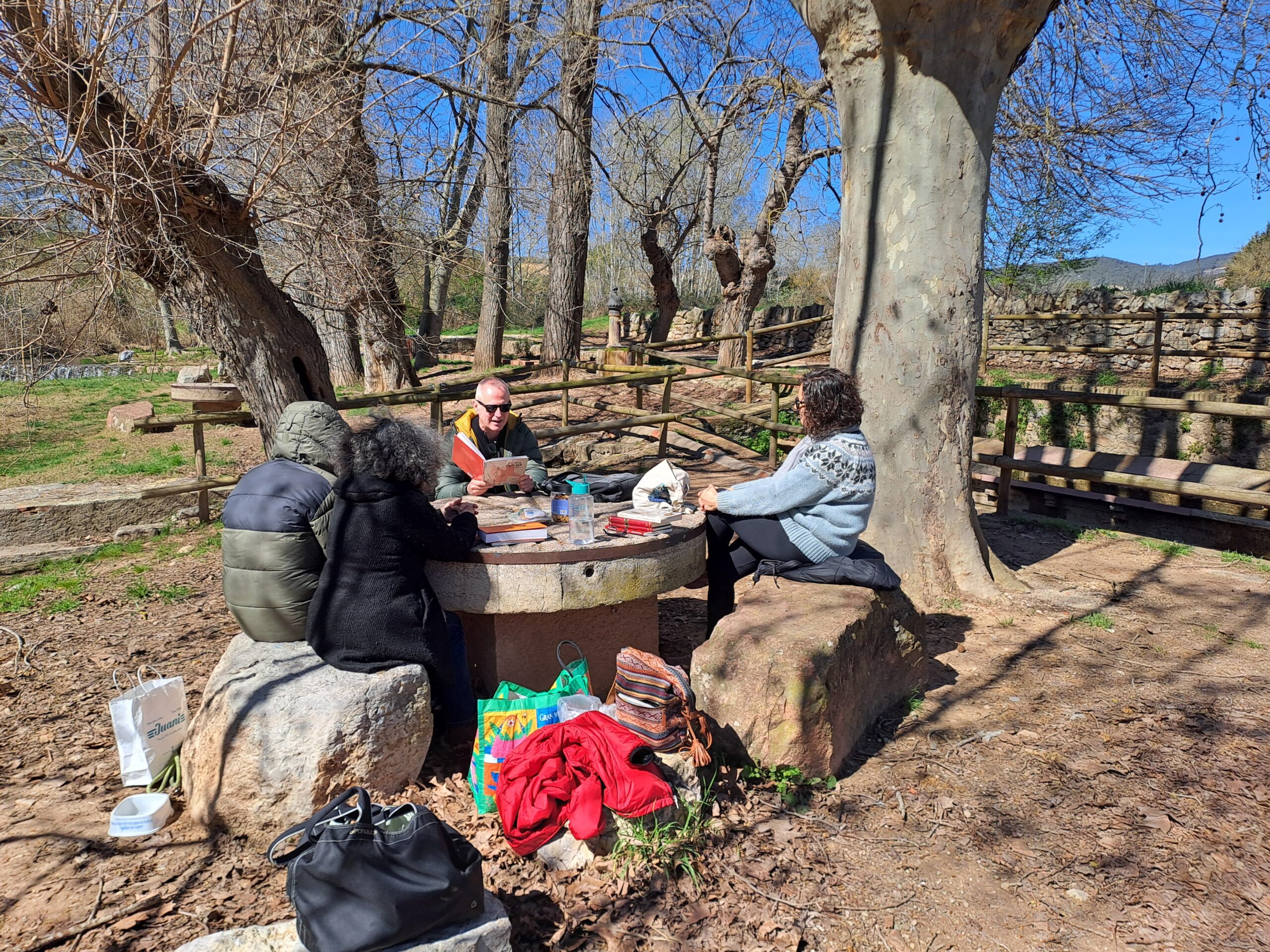 Després de múltiples variacions, la lectura oberta de març s’ha dut a terme al rentador de Sant Joan de Mediona. En petit comité i, contra tot pronostic, gaudint d’un dia ben assoleiat ha permès assaborir una forma de lectura en veu alta compartida inusual i especialment agradable.