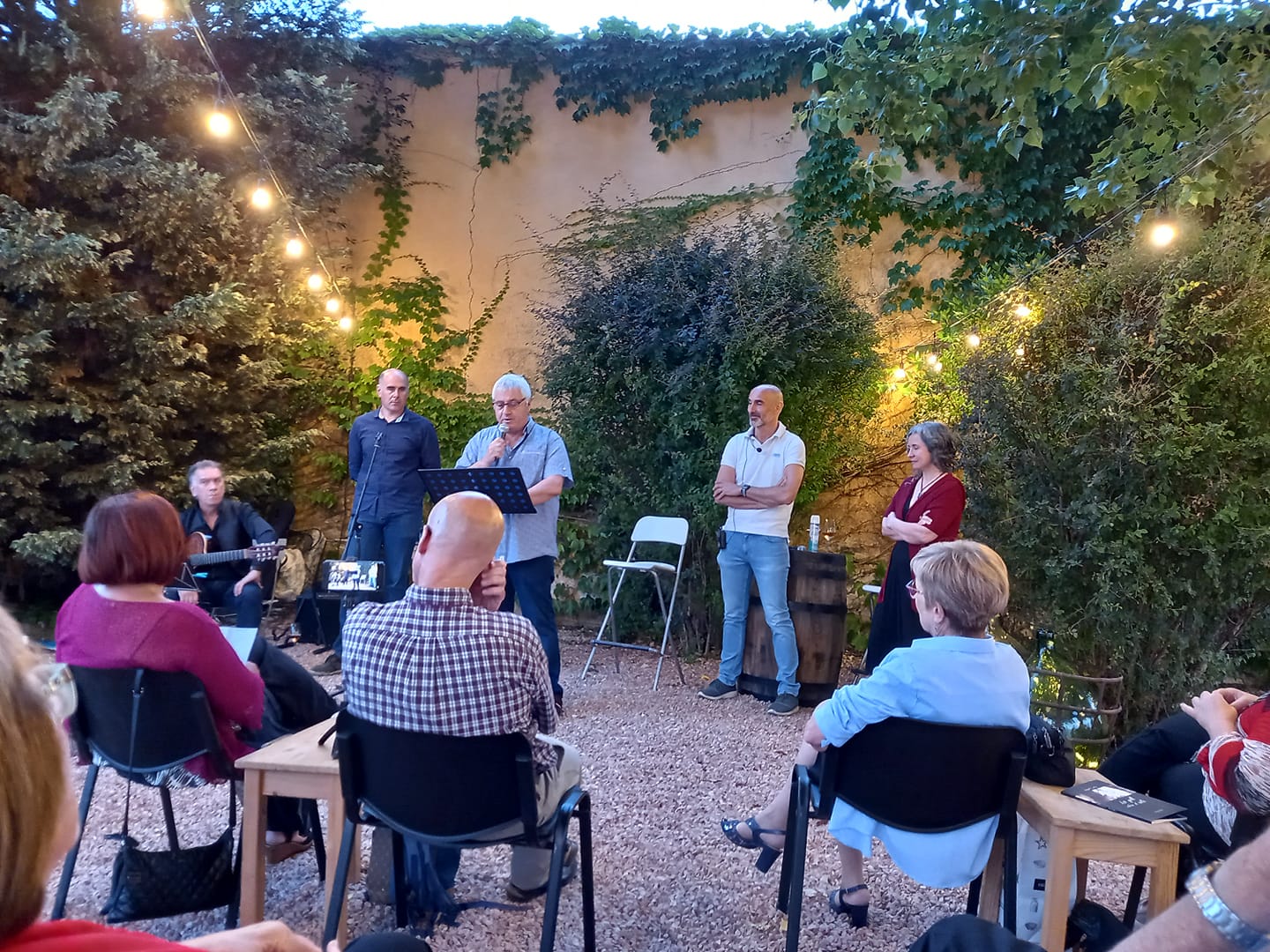 Va ser pletòric: Ajuntament de Santa Fe del Penedès; Celler Giró Ribot; l’autor – en Miquel Cartró-; el músic que ens va acompanyar – Xavi Díaz -, i lectors vam sentir que estàvem fent màgia. Gràcies a la vida per crear aquests moments.